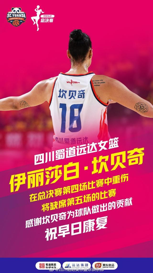 北京时间4月25日,四川女篮官方发文确认坎贝奇由于在总决赛第四场受到重伤,将缺席于今天晚上19:30分进行的总决赛G5。