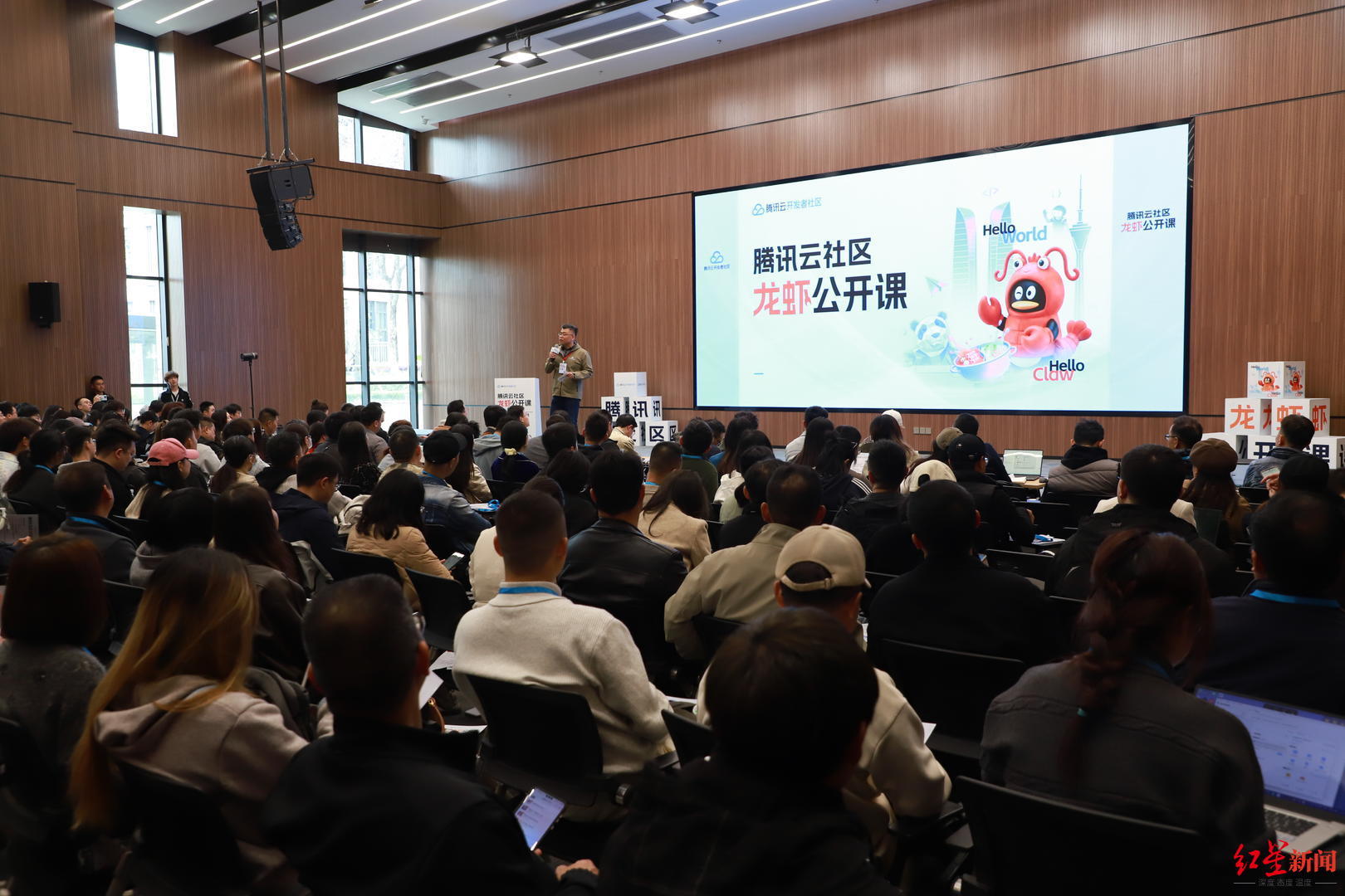 一场由腾讯云发起的“龙虾公开课”,让超千名成都人挤满了成都高新区天府长岛数字文创园的路演厅。3月21日,作为腾讯官方“龙虾”智能体全国巡装计划的首站,成都站活动以其空前的规模与热度,正式揭开了这股源自AI技术、却已席卷街头巷尾的“养虾”热潮的一角。